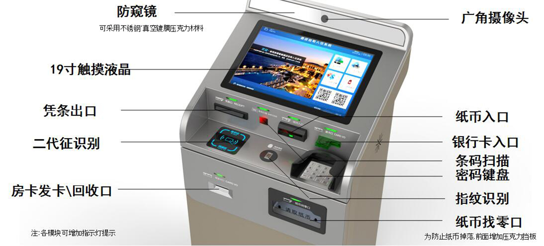 ? ? ? ?酒店自助入住機是一種無人值守、操作簡單、查詢方便快捷的人機交互設備。?客人可以通過自助入住設備自助開房,退房,結賬離店。達到提高顧客辦事效率、節約時間,時間節約酒店運營成本、提高服務質量的目的。其具有服務完整性、可視性、系統化和可維護性,是酒店自動化處理業務的有效保證