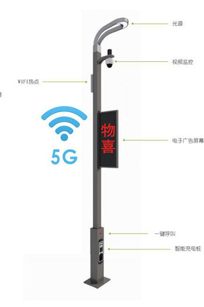 “智慧桿” 又叫多功能智能桿:就是把集智慧照明、視頻監控、交通管理、環境監測、無線通信、應急求助、通信基站、充電樁、傳感器、等各種設施和服務集成到同一根桿上,實現多行業信息采集、發布、傳輸的精確化管理。在5G帶動的智慧城市建設中,“智慧桿”就是如同“末梢神經元”般的存在。