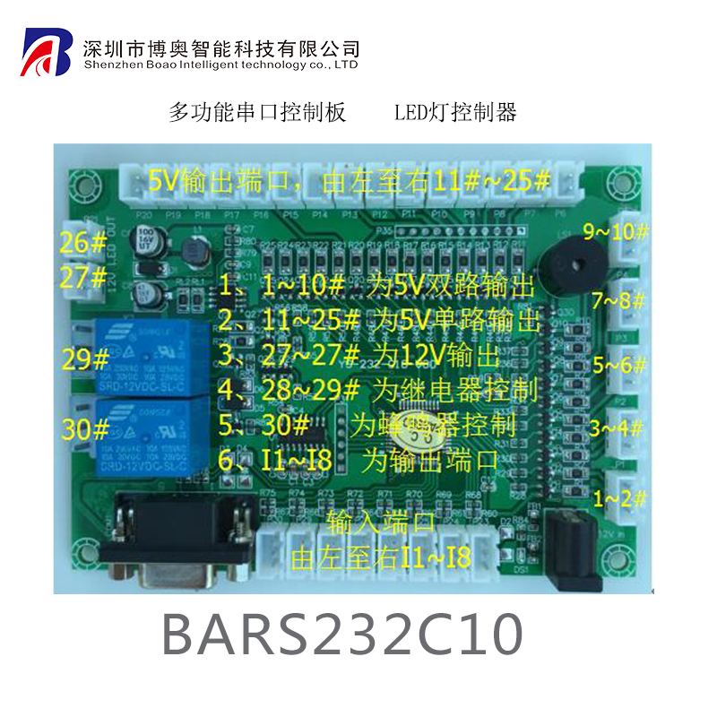 232C10是專為自助終端設備配套開發的一款串口控制器模塊,可應用此模塊實現各模塊操作指示燈的提示控制、接收開關量的輸入上傳、繼電器常開、常閉輸出等,并帶有看門狗功能,利用此功能可對某一模塊實現狀態自檢、硬復位功能。