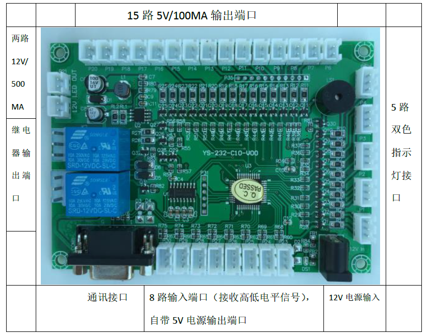 15路5V/100mA輸出,可控制各操作提示燈條;