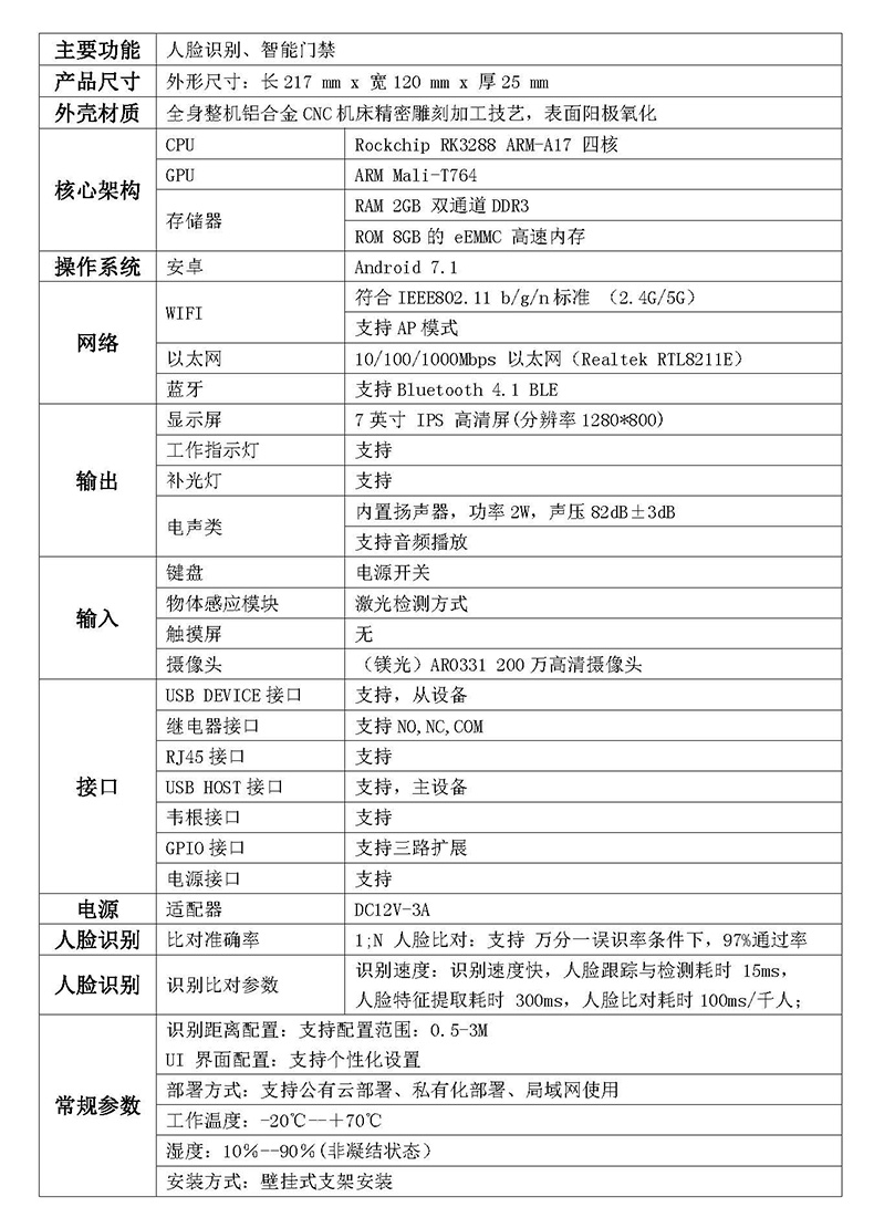 · 算法品牌:曠視,集成其算法核心引擎開(kāi)發(fā)的人臉識(shí)別APP(可選配置)
