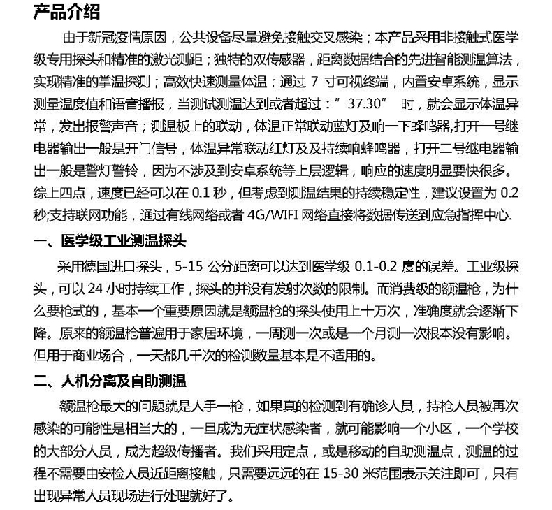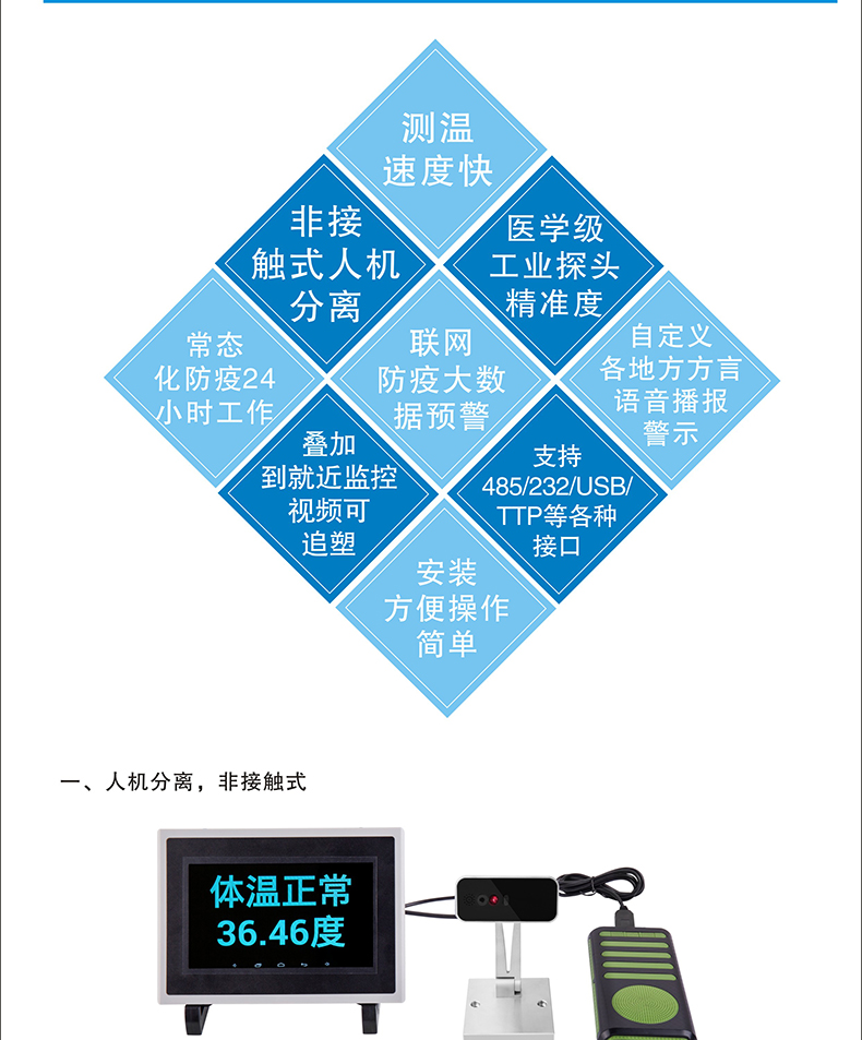 1. 采用醫學級工業測溫探頭,可以7*24小時不間斷測溫。
