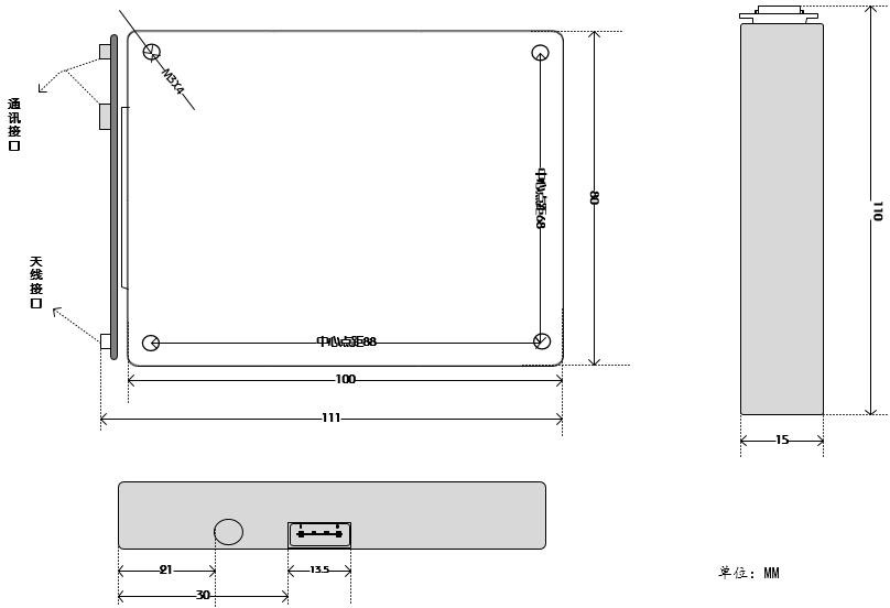 天線接口(具體天線規(guī)格及尺寸根據(jù)用戶要求可定制,具體尺寸會有變化)