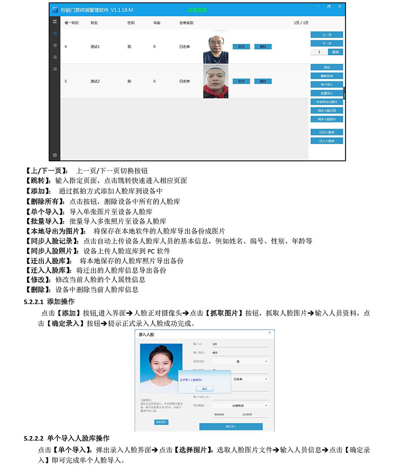??? 用戶可以在此界面,可對人臉庫執行加、減、刪、查、改,導出,遷入等操作。