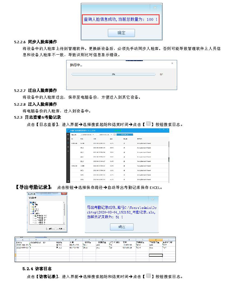 【日志查看】:查看、導出設備保存的人臉識別記錄信息,并生成人員考勤記錄表。