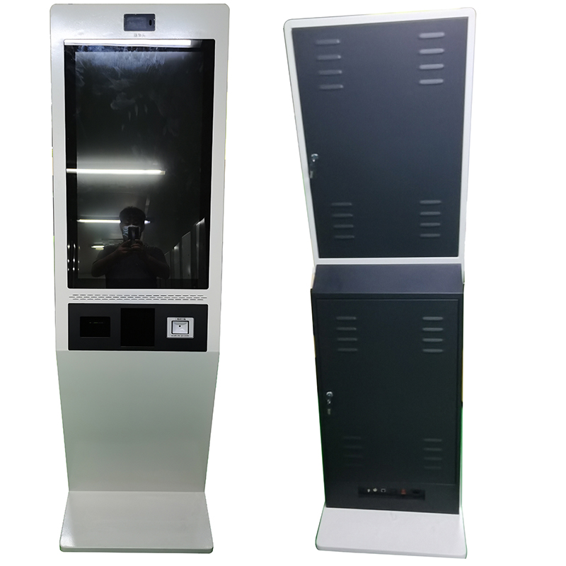 32寸多功能自助終端一體機整機符合人體工程設(shè)計,外殼采用鈑金烤漆工藝,外形美觀;設(shè)備內(nèi)部模塊化設(shè)計,主要集成高靈敏電容觸摸屏、高分辨率液晶屏、工控主板、身份證閱讀器、IC卡讀寫器、高清攝像頭、一二維條碼掃描、熱敏打印等模組,產(chǎn)品具有結(jié)構(gòu)合理,操作簡便,觸摸靈敏,性能穩(wěn)定,方便維護等優(yōu)點;同時設(shè)備可安裝安卓系統(tǒng) 和WIN系統(tǒng)供客戶選擇,以及根據(jù)客戶需求進行功能模塊定制。