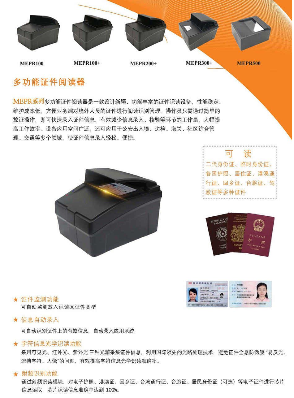 主要用于檢測和識別各種旅行證件,如護照、電子護照、簽證、外國駕照、電子港澳通行證、往來臺灣通行證、臺胞證、回鄉證、身份證、居住證等,其它可選功能包括:
