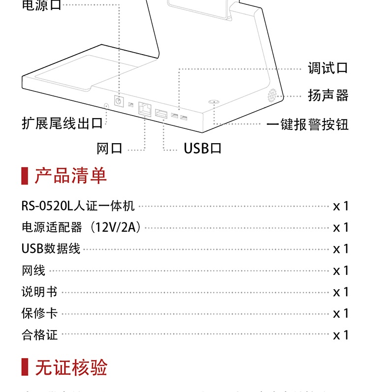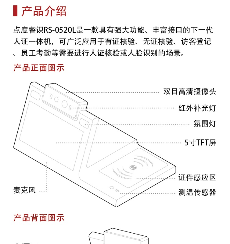 產品名稱:5寸人證比對測溫一體 產品型號:RS-0520L