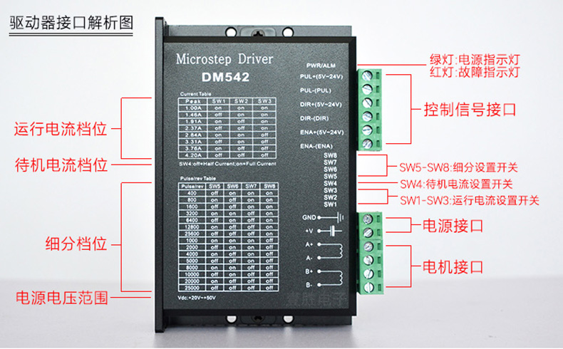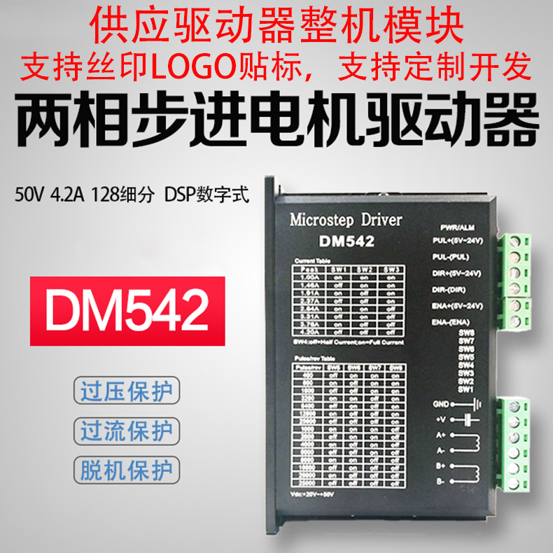 DM542是博奧智能針對市場需求開發的一款相混合式步進電機驅動器,從設計到加工經歷每個環節,面向客戶出售燒錄程序的主控芯片、主控板及外殼套料以及成品驅動器模塊;同時我公司根據客戶需求提供各種控制板及模塊定制。