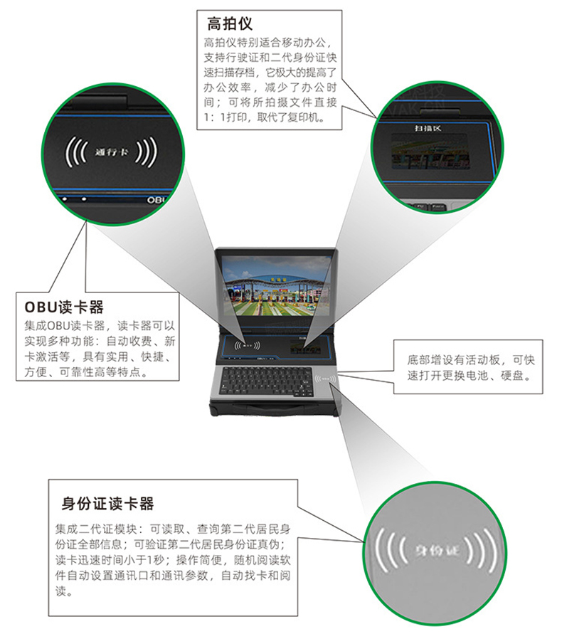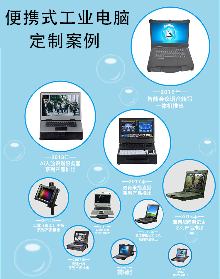 便攜式工業電腦具有性能穩定,集成高,設備操作簡單;機身采用鋁合金材質,表面硬陽極氧化處理;全方位的防震動橡膠墊和機箱內部結構之間的防震技術,使便攜式工業電腦具有極強的抗震性能,能夠在較惡劣的環境下滿足客戶的各種程度的測試和工作需求。博奧智能可根據客戶需求定制開發各種非標便攜式筆記本電腦,定制包括功能、外觀、配置等服務。