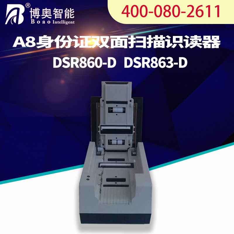 ? ? ? A8雙面掃描識(shí)讀器(DSR860-D) (以下簡稱DSR860)是一款集成圖像掃描、國內(nèi)第二代身份證RFID數(shù)據(jù)讀取功能的嵌入式專用雙面掃描設(shè)備。產(chǎn)品設(shè)計(jì)采用光學(xué)分辨率為600dpi的A8接觸式影像傳感器(CIS),掃描精度為8bit(灰度)。通過設(shè)置相應(yīng)的工作模式,設(shè)備能對(duì)符合國內(nèi)第二代身份證標(biāo)準(zhǔn)的卡片進(jìn)行雙面掃描以及RFID數(shù)據(jù)讀取、解碼。