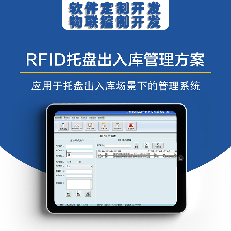 2)叉車師傅操作:改造叉車帶RFID讀寫器,叉起托盤的同時(shí)通過叉車作業(yè)平板操作,將托盤貨物相關(guān)信息寫入托盤標(biāo)簽,并進(jìn)行入庫(kù)操作。 監(jiān)督人員操作:通過移動(dòng)式的手持機(jī)將托盤貨物信息寫入托盤標(biāo)簽,并進(jìn)行入庫(kù)操作。