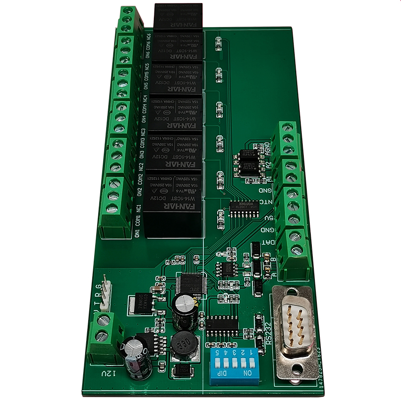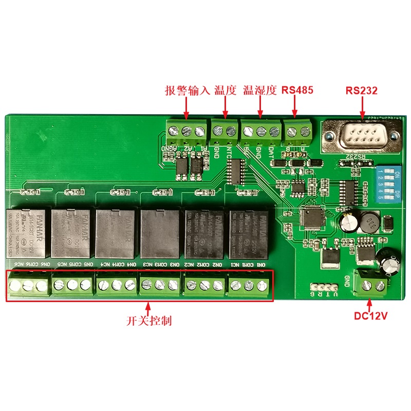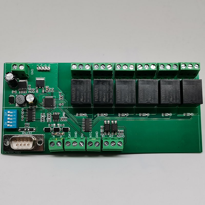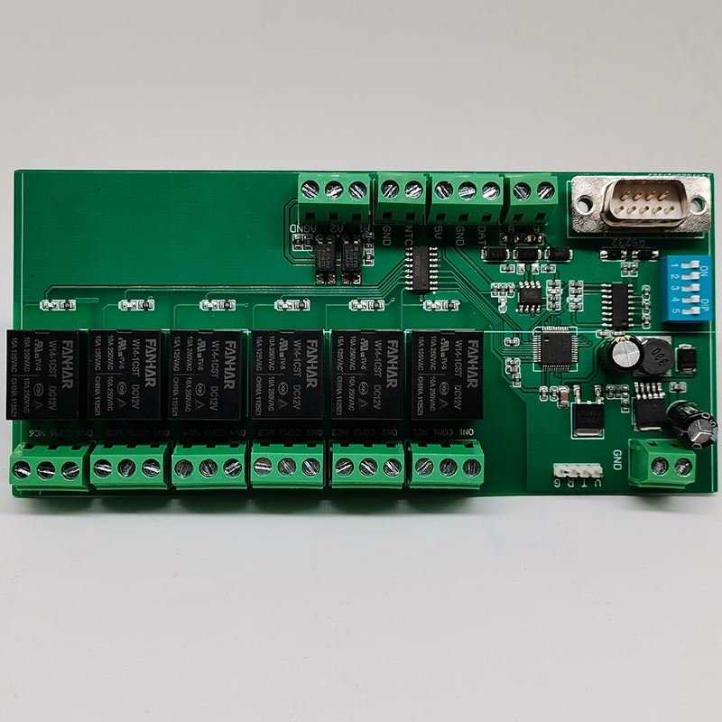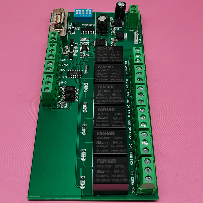 多功能繼電器控制板采用RS485和RS232通訊控制,可控制六路繼電器開關,可外接報警提示,溫度顯示;溫濕度顯示等設備;根據需求可定制各種功能PCBA方案控制板及軟件管理系統APP小程序,OCR識別軟件