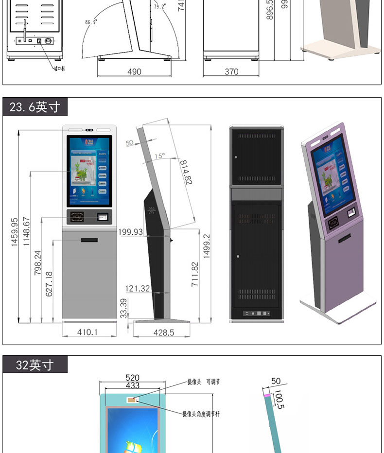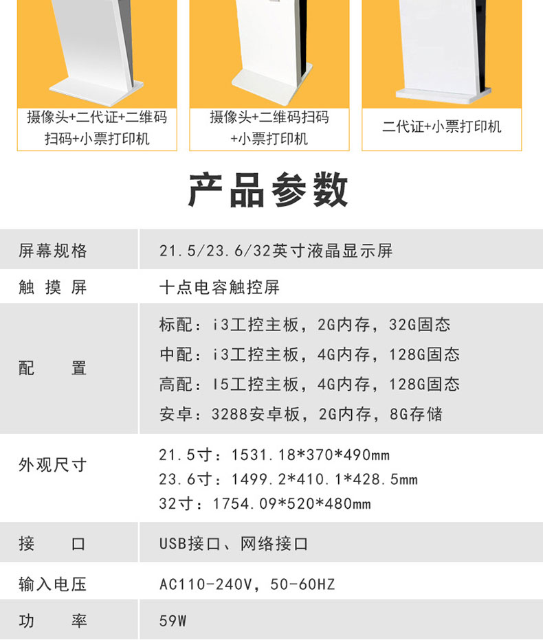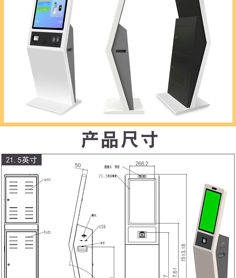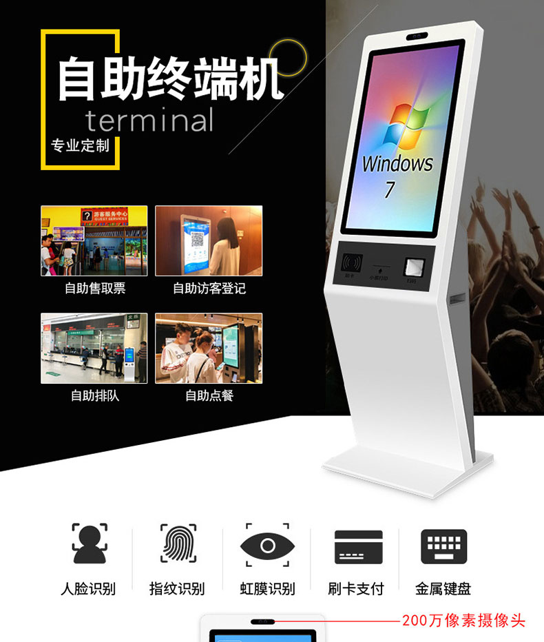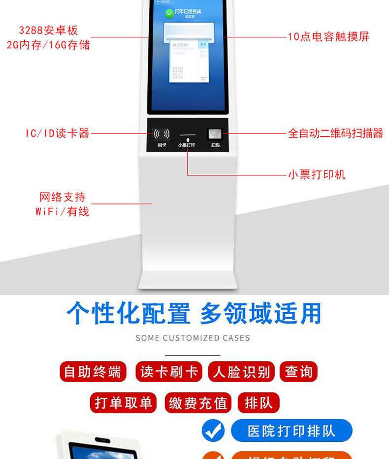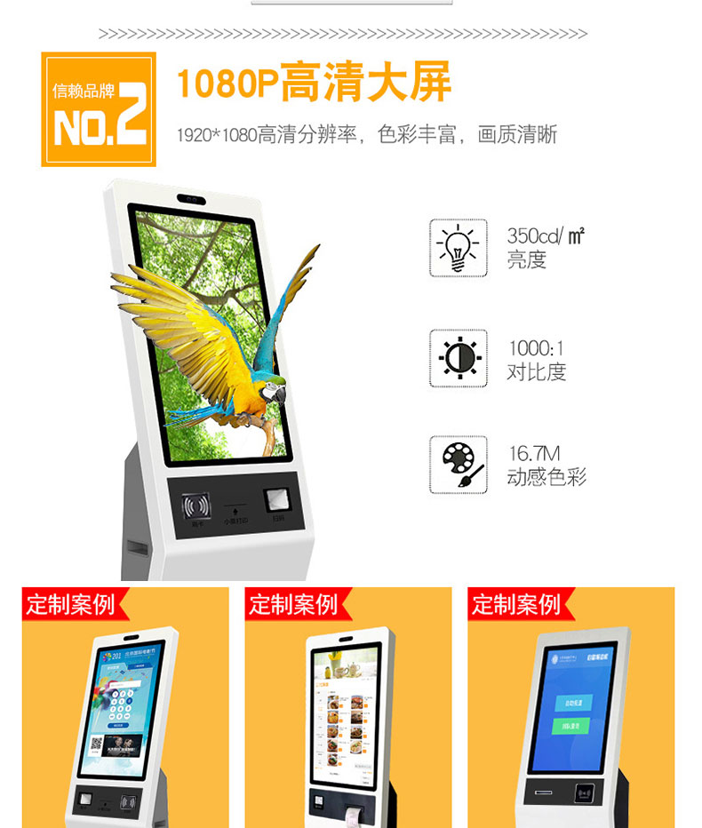 自助終端機定制:定制各種場景各種款式非標終端機;例如訪客機、景區自助取票機、醫院繳費查詢機、醫院自助取單機、社保查詢機、室內外廣告機、排隊叫號機、工控一體機、電力繳費查詢機、圖書自助銷售機、便攜式計算機、酒店自助入住機、自助收銀機等終端。