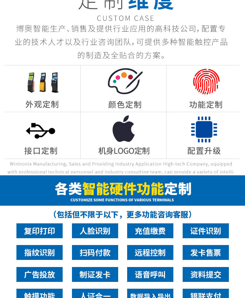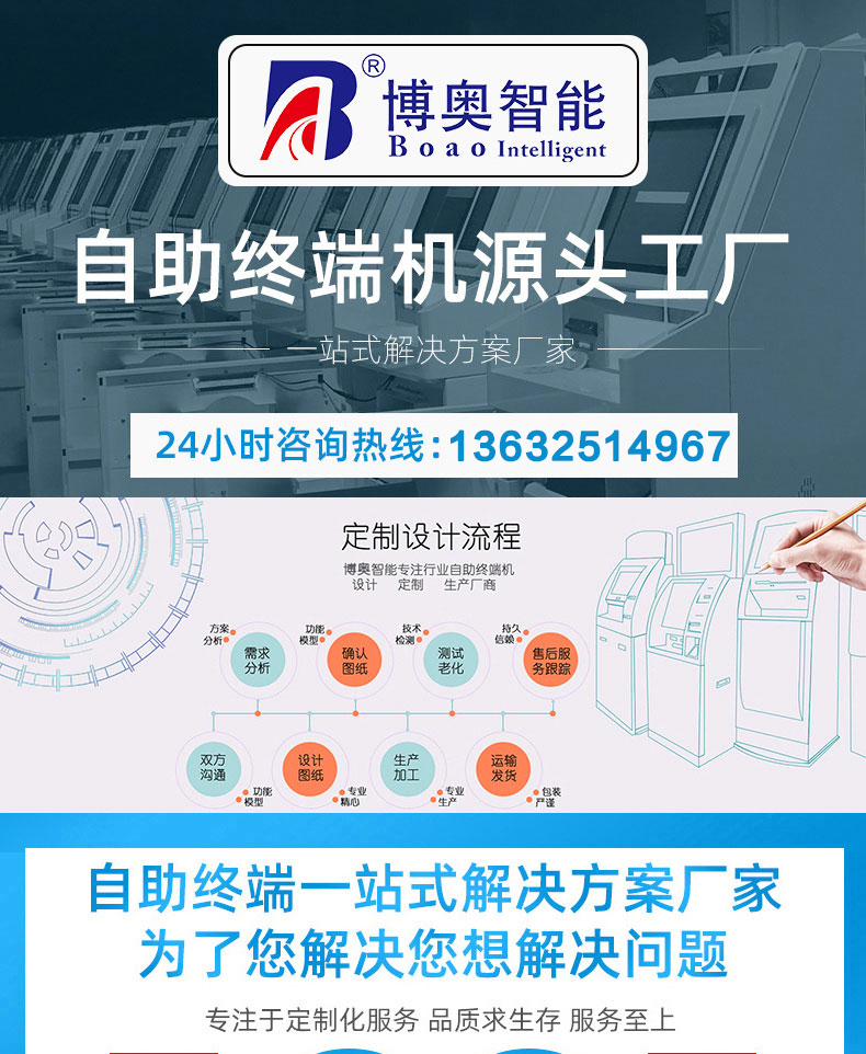 深圳市博奧智能科技有限公司專業(yè)提供自助終端機(jī)、觸摸查詢一體機(jī)、廣告機(jī)、液晶顯示器等產(chǎn)品的硬件、軟件研發(fā)與設(shè)計(jì)加工OEM/ODM等一站式服務(wù);我們一直秉承以產(chǎn)品質(zhì)量為核心、客戶至上、服務(wù)共贏為宗旨,為金融、醫(yī)療、教育、人工智能、政府工程項(xiàng)目、智慧城市、軌道交通、商業(yè)自助服務(wù)、廣告?zhèn)髅降刃袠I(yè)提供質(zhì)量過(guò)硬的產(chǎn)品和優(yōu)質(zhì)的服務(wù)。
