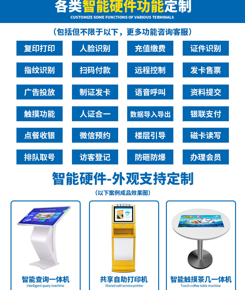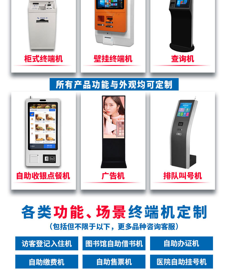 定制實用的自助終端設(shè)備,我們是專業(yè)。多種定制款式任意選擇,可根據(jù)需求定制外觀屏幕尺寸可選,配件數(shù)量可選,主機配置可選。