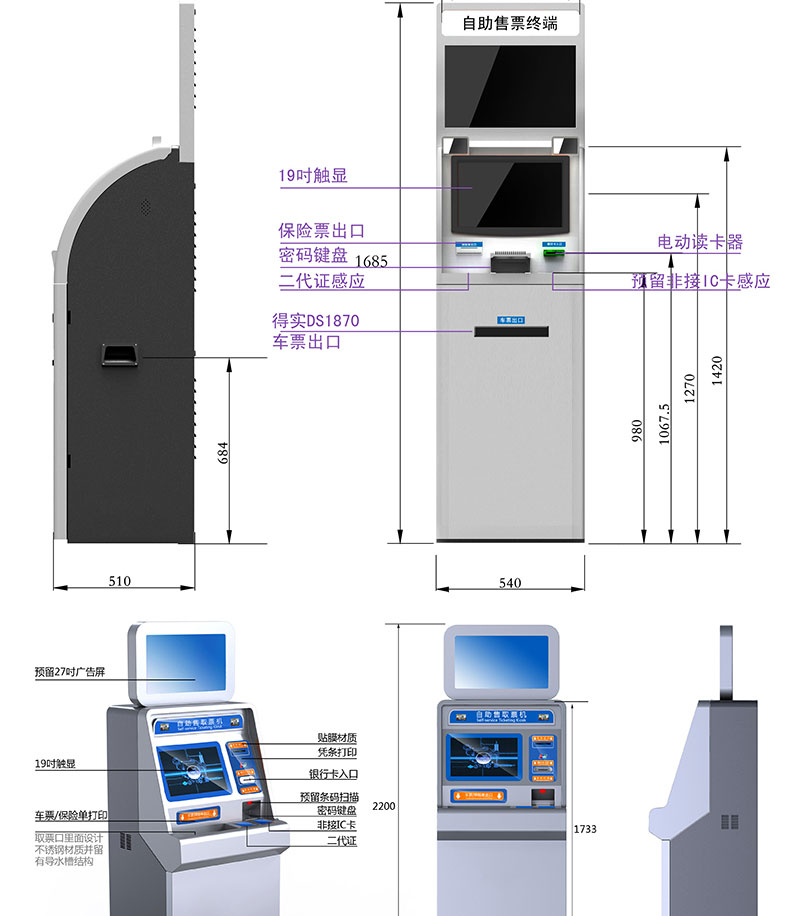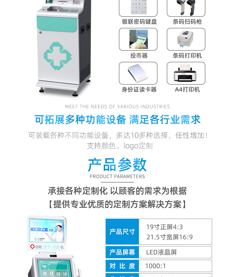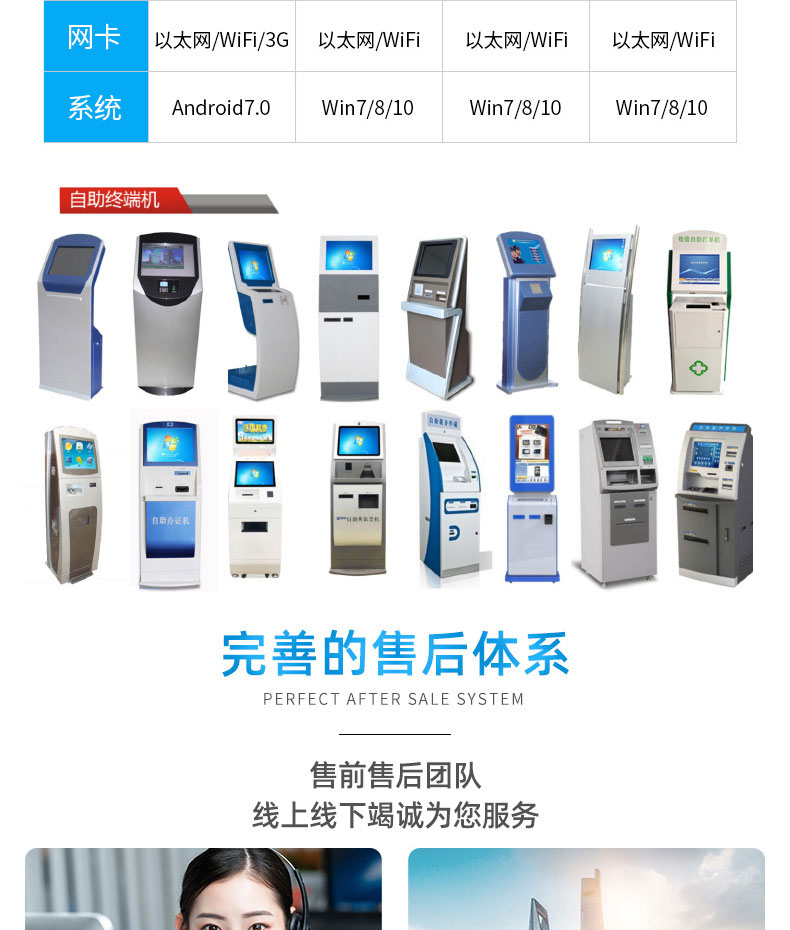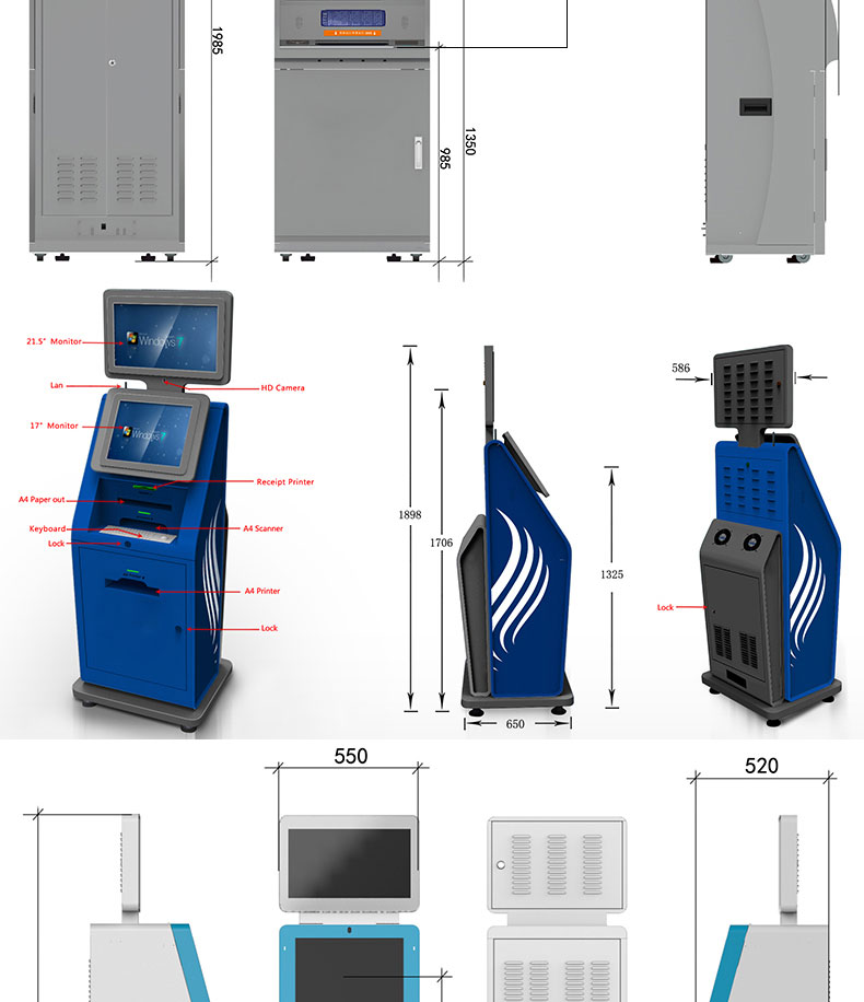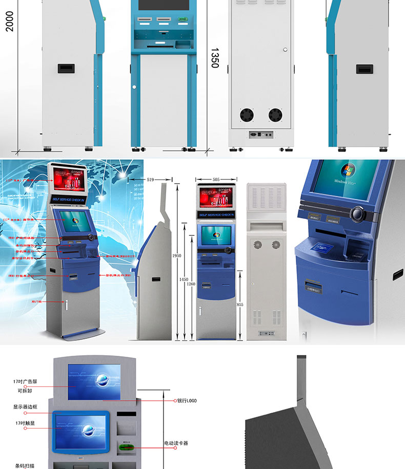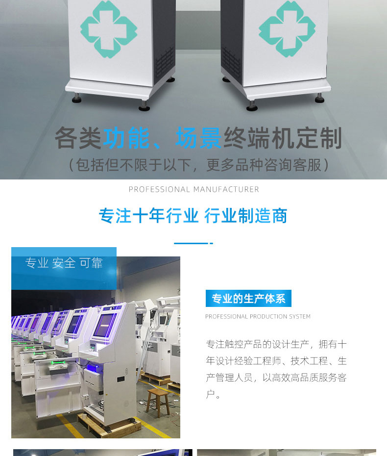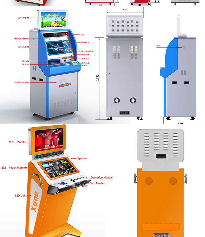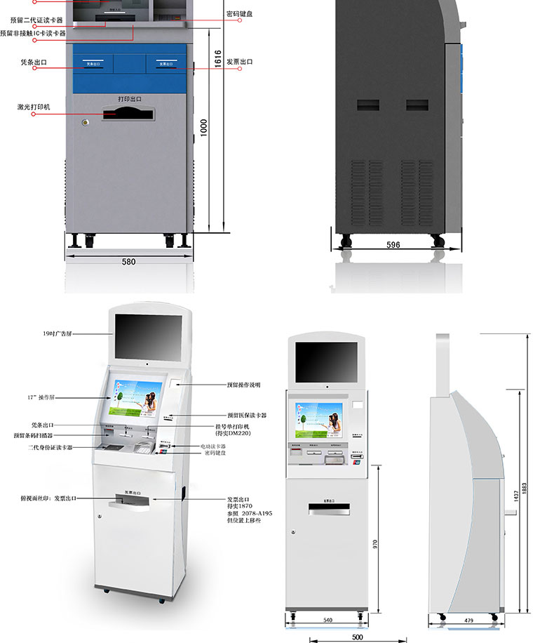 自助終端機定制:定制各種場景各種款式非標終端機;例如訪客機、景區自助取票機、醫院繳費查詢機、醫院自助取單機、社保查詢機、室內外廣告機、排隊叫號機、工控一體機、電力繳費查詢機、圖書自助銷售機、便攜式計算機、酒店自助入住機、自助收銀機等終端。