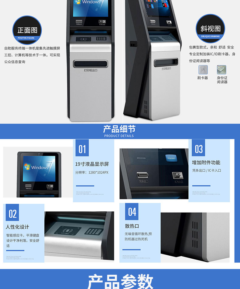 自助終端機定制:定制各種場景各種款式非標終端機;例如訪客機、景區自助取票機、醫院繳費查詢機、醫院自助取單機、社保查詢機、室內外廣告機、排隊叫號機、工控一體機、電力繳費查詢機、圖書自助銷售機、便攜式計算機、酒店自助入住機、自助收銀機等終端。