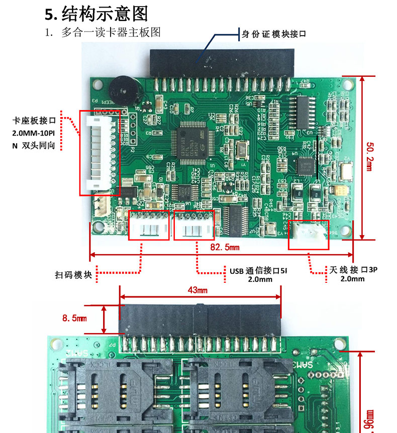 自助終端機醫院社保醫療健康銀行卡身份證閱讀器多功能嵌入式模塊