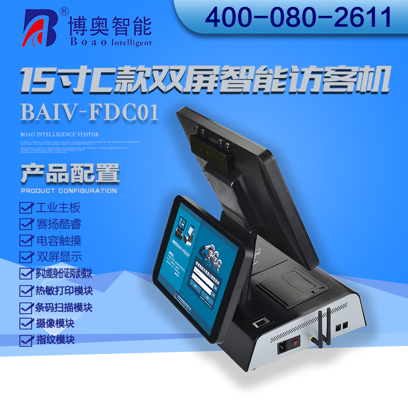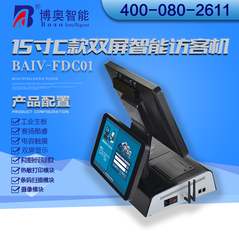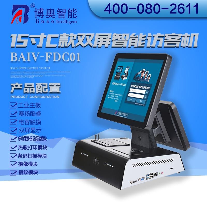 ? ? ? 15寸C款雙屏智能訪客機主要用在政府機關、關口、機場、軍隊、公安、法院、學校、事業單位、花園小區、高檔寫字樓、工廠等門衛傳達室用來訪客登記管理;辦公大廳、營業大廳、醫院等場所做為辦公設備