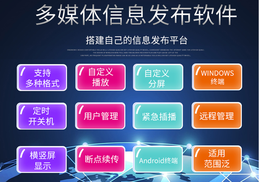 多媒體信息綜合系統是一種全新的媒體概念,指的是在醫院、銀行、大型商場 、超市、酒店、飯店、影院、街道、廣場、地鐵、火車、公交車站、醫院及其他公共 場所,通過終端顯示/互動設備,發布商業、財經和娛樂信息的多媒體專業視聽系統。其旨在特定的物理場所、特定的時間段對特定的人群進行廣告信息播放的特性,融合了多媒體視頻信息的多樣性和生動性,實現了信息發布的遠程集中管理和內容隨時更新,使受眾在第一時間接收到最新鮮的各類資訊。它將成為信息化建設的重要載體,不僅能夠提供及時、全面、優質、高效的信息服務以及全新的文化氛圍,還能夠極大地提升環境的整體形象,也是現代建筑的必然趨勢。