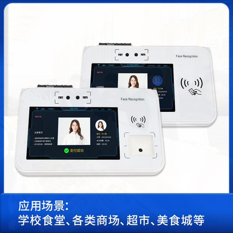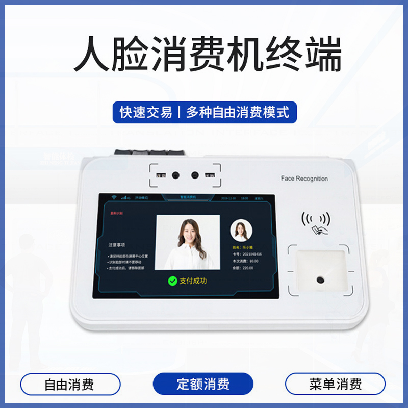 近些年,我司跟緊時(shí)代發(fā)展,充分了解市場(chǎng)需求后,決定在原有消費(fèi)機(jī)基礎(chǔ)上研發(fā)改進(jìn)新一代消費(fèi)機(jī),經(jīng)過(guò)技術(shù)工程師的日夜攻克以及充分的實(shí)驗(yàn)驗(yàn)證,全新的非接觸式IC卡的消費(fèi)機(jī)擴(kuò)展人臉識(shí)別消費(fèi)機(jī)正式面世。人臉智能+食堂消費(fèi)系統(tǒng)有效的解決了傳統(tǒng)的飯票或者飯卡丟失、補(bǔ)辦的繁瑣步驟,刷臉支付更為智能、廣泛、方便。而且人臉智能+食堂消費(fèi)更能凸顯作為機(jī)關(guān)單位與時(shí)代接軌的先進(jìn)性、高效性人臉識(shí)別消費(fèi)管理系統(tǒng)是當(dāng)前廣泛使用的收費(fèi)、食堂售飯系統(tǒng)。它采用了雙目結(jié)構(gòu)光,雙目200萬(wàn)寬動(dòng)態(tài)模組、雙目活體檢測(cè)人臉系統(tǒng),并結(jié)合現(xiàn)代管理方法設(shè)計(jì)而成。具有免接觸,無(wú)損耗,技術(shù)先進(jìn),系統(tǒng)擴(kuò)張性好,無(wú)需維護(hù),投資一步到位等優(yōu)點(diǎn),避免了因接觸IC卡的讀寫(xiě)、油污、芯片裸露等缺陷造成的各種故障。是取代磁卡,無(wú)接觸式人臉的收費(fèi)機(jī),是廣大學(xué)校,企事業(yè)單位提高管理水平,實(shí)現(xiàn)電腦化的優(yōu)先選擇。