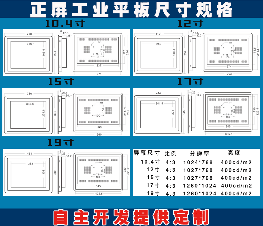 設備尺寸:10.4 12 15 17 19寸 支持定制尺寸