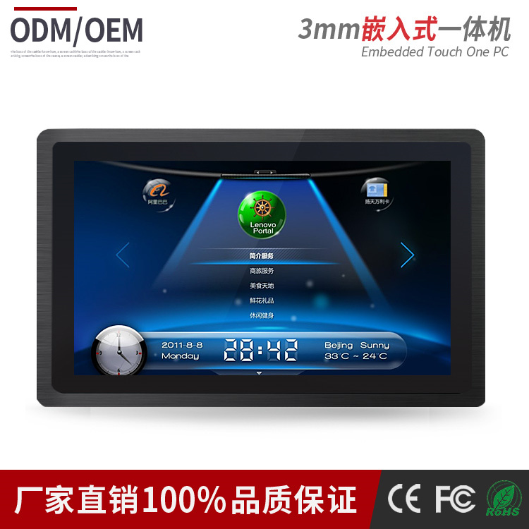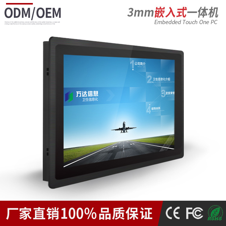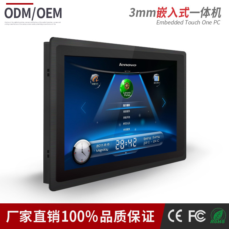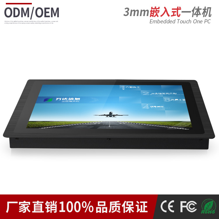 嵌入式工業(yè)平板電腦外殼采用鋁合金材料,鑄模沖壓,陽極氧化,拉絲工藝制作而成,致使面框厚度達到3mm,面板無縫隙純平顯示設(shè)計達到IP65要求;內(nèi)部集成X8架構(gòu)Intel Baytrail平臺工控主板(自主開發(fā))、固態(tài)硬盤內(nèi)存、工業(yè)高清液晶屏及十點電容觸摸屏等主要部件,它具有精美輕巧,防塵防水,堅固耐用、安全穩(wěn)定,操作方便等特點。