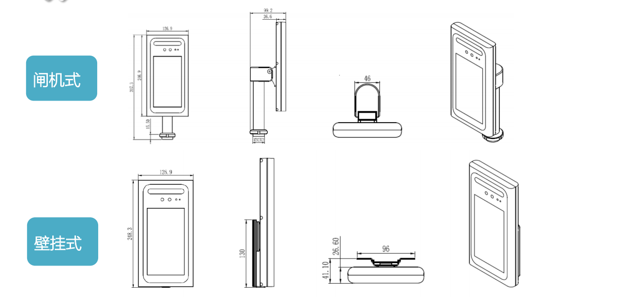 安裝方式 壁裝支架、壁裝、86盒安裝 立式支架、閘機(jī)裝