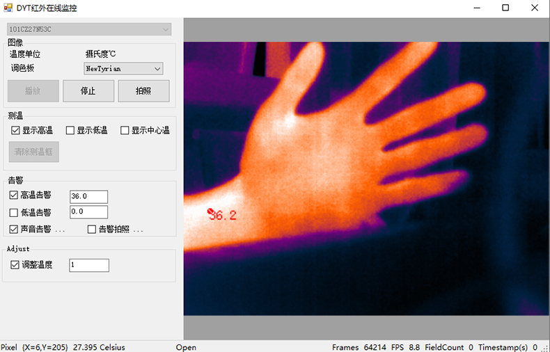 支持超過設置的門限溫度告警(高低溫均可),可以聲音告警,同時抓拍告警時的照片并存儲。